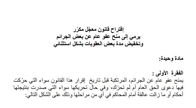 للاطّلاع على اقتراح قانون العفو الذي أعلن تكتل “الاعتدال الوطني” نيّته تقديمه إلى المجلس النيابي