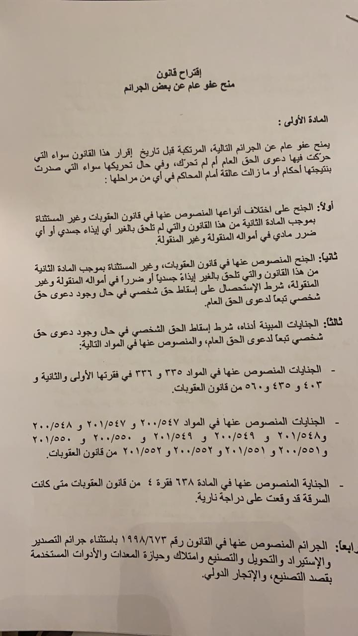 صيغة معدلة لاقتراح العفو العام تسقط بالباراشوت على مجلس النواب قبل قليل