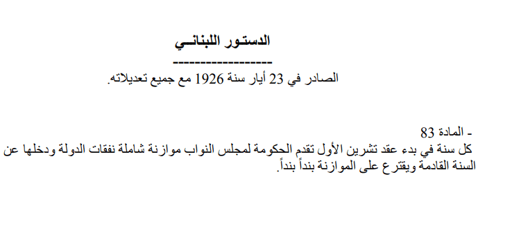 وما يفاقم الحيرة في هذا الخصوص هو أن الدستور السوري الصادر سنة 1930، الشبيه جدا بالدستور اللبناني الذي أقر سنة 1926، نص في المادة 99 وفقا لصيغتها العربية على التالي: “تقدم الحكومة إلى مجلس النواب في بدء دورة تشرين الأول من كل سنة الموازنة العامة لنفقات الدولة ومداخيلها عن السنة التالية. ويقترع على الموازنة مادة مادة”. فلماذا يشير الدستور السوري إلى مواد الموازنة بينما الدستور اللبناني يستخدم مصطلح البند؟